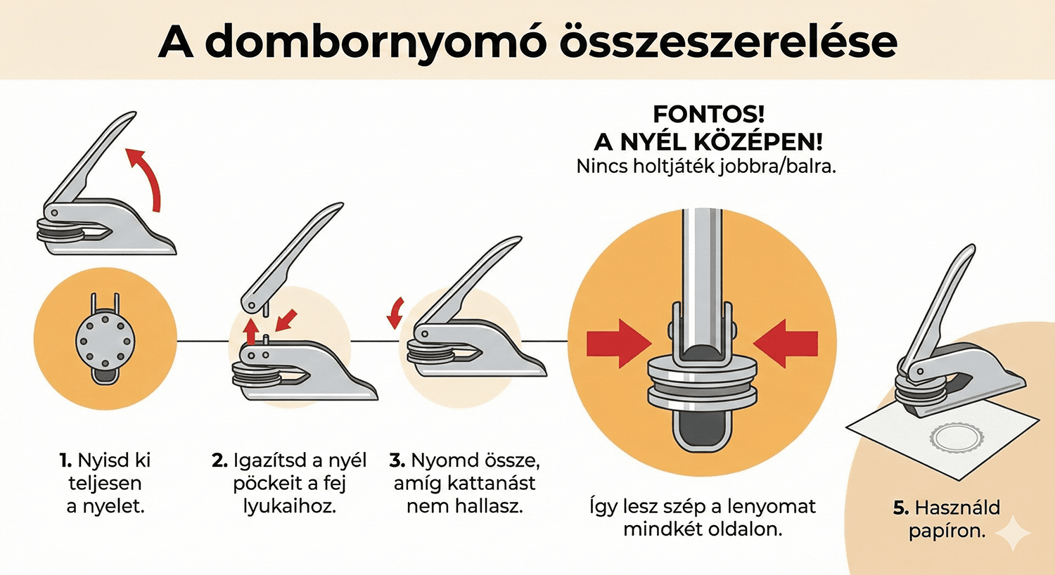 Szerkezet hossza: 110 mm – ergonomikus kialakítás a könnyed bélyegzésért